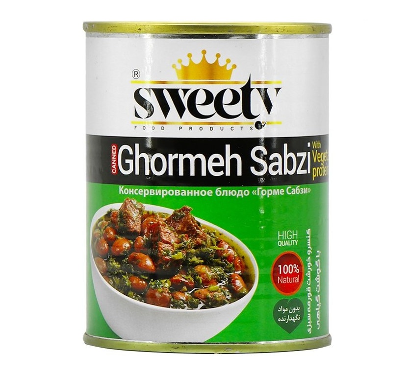 کنسرو خورشت قرمه سبزی با گوشت گیاهی سوییتی370 گرم